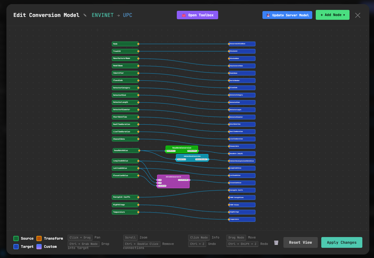 Al seleccionar un modelo, se habilitará el botón "Edit Model" situado en el centro de los dos editores. Al pulsarlo, se abre la interfaz de edición: