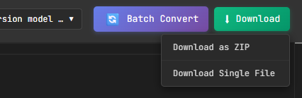 - ZIP: Descarga un archivo comprimido que contiene la totalidad de la conversión realizada durante el proceso por lotes (Batch).